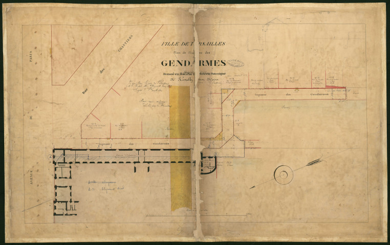 Ville de Versailles. Gendarmes (impasse des).Paris (avenue de), Chantiers (rue des). Caserne d'infanterie.