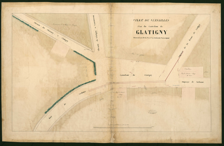 Ville de Versailles. Glatigny (carrefour de).Béthune (rue de), Béthune (impasse de), Ferme-de-Glatigny (impasse de la), Chesnay à Glatigny (chemin du) , Glatigny à Vaucresson (chemin de) .