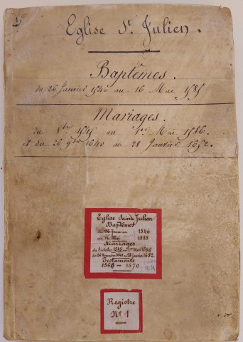 Baptêmes (26 janvier 1546-3 janvier 1575, 28 janvier 1575-16 mai 1585). Mariages (8 octobre 1545-1er mai 1586, 26 novembre 1640-28 janvier 1652). Testaments : 2 actes (1560-1570). Sépulture : 1 acte (4 juin 1621).