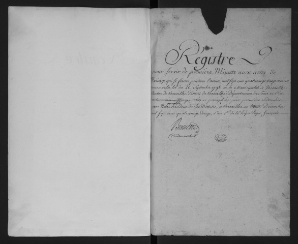 A remarquer : l'acte de (re)mariage du 30 septembre 1793 entre Pierre-Charles Gravois [maire de Versailles 173-1794] et Clotilde-Gabrielle-Claire Godard (acte n°275, page 276).