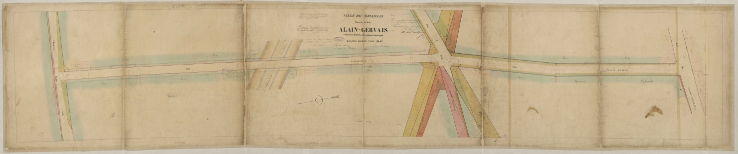 Ville de Versailles. Bonne-Aventure (rue de la).Picardie (avenue de), Lesseps (boulevard de), Alain-Gervais (rue), République (boulevard de la), Emile-Deschamps (rue), Petits-bois (rue des). Chemin de fer Rive-Droite, barrière de la Bonne-Aventure.
