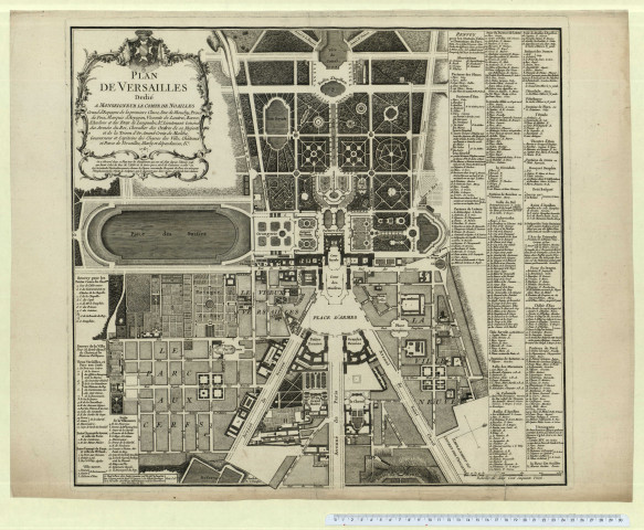 Notamment Ms 1355 Aa 49 R 58 : plan terrier de la ville de Versailles, XVIIIème s.
