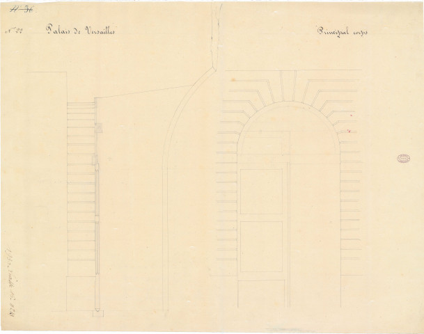 Verso : Elévation et coupe d'une porte.