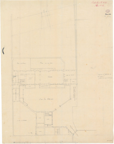 Notamment Ms 1355 Aa 49 R 58 : plan terrier de la ville de Versailles, XVIIIème s.