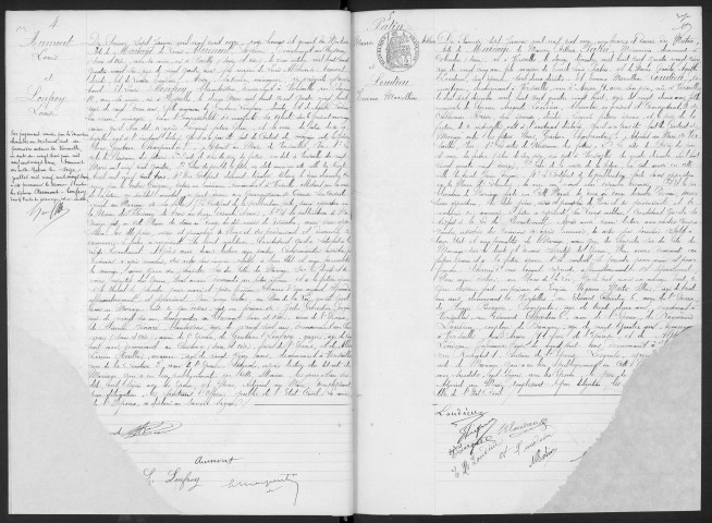 Actes n° 1 à 4 : page déchirée, manque la partie inférieure droite.