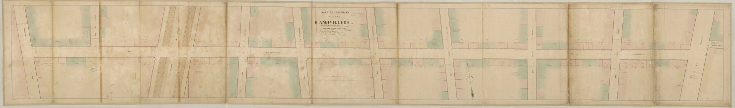 Ville de Versailles. Angiviller (rue d').Maurepas (rue de), Savoie (rue de), Roi (boulevard du), Mouchy (rue de), Angoulême (rue d'), Mademoiselle (rue de), Sainte-Adélaïde (rue), Sainte-Victoire (rue), Sainte-Sophie (rue), Duplessis (rue), Débarcadère (impasse du).
